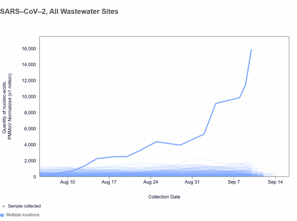 πŸ˜²πŸ˜²πŸ˜²πŸ’©πŸ’§β€ΌοΈ This thread (2025-09-18) discusses an amazing spike in COVID-19 detections in the wastewater of Coeur d’Alene, Idaho. This graph from this thread (2025-09-18) shows Coeur d’Alene’s wastewater detections compared to every other tested sewershed in the USA: