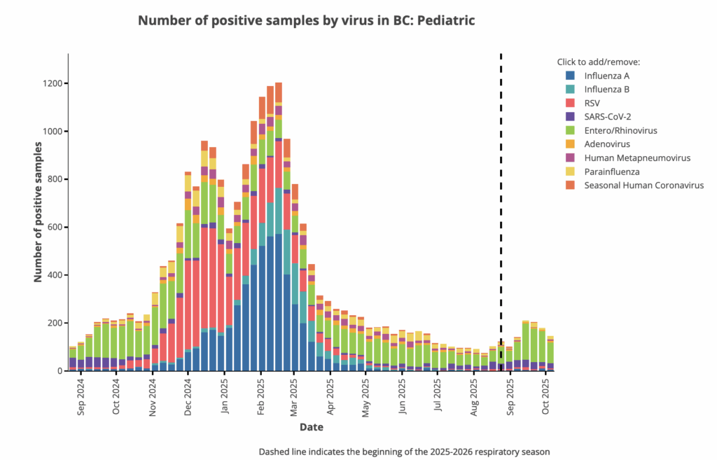 Compared to adults, there’s almost no COVID-19 and a lot of rhino/enterovirus and RSV!