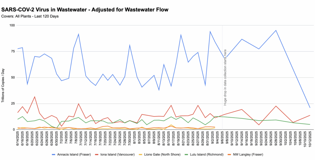 Jeff double-checked the number for Fraser, and that is in fact an accurate representation of the number the province gave. Remember, though, that the province is only reporting one data point per week instead of three — so one would expect that we will see bigger swings in the data.