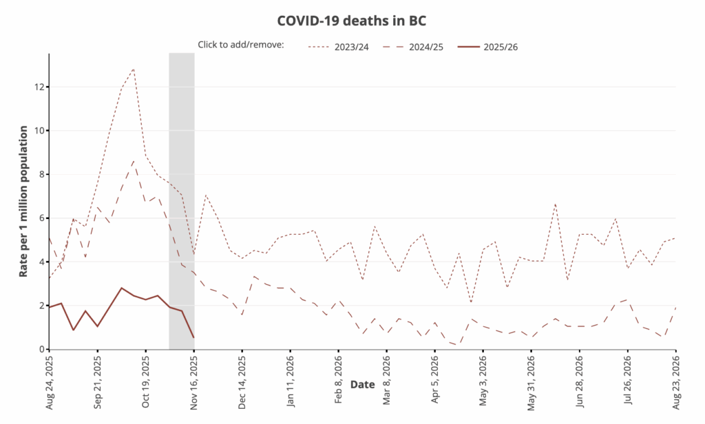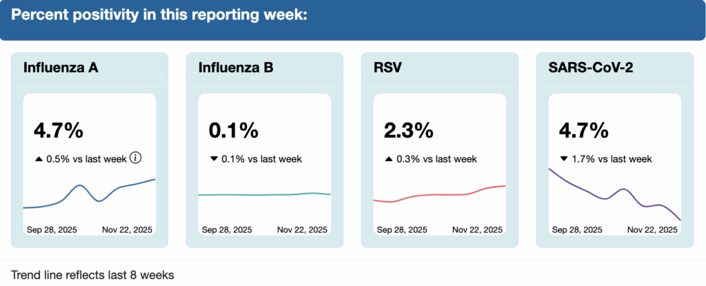 In the most recent data (ending 22 Nov) as reported on 27 Nov 2025, among influenza-like illness (i.e upper respiratory diseases) cases the province has test data for: