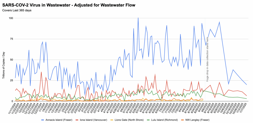 💩💧 From Jeff’s wastewater spreadsheet, now showing a year’s worth of data: