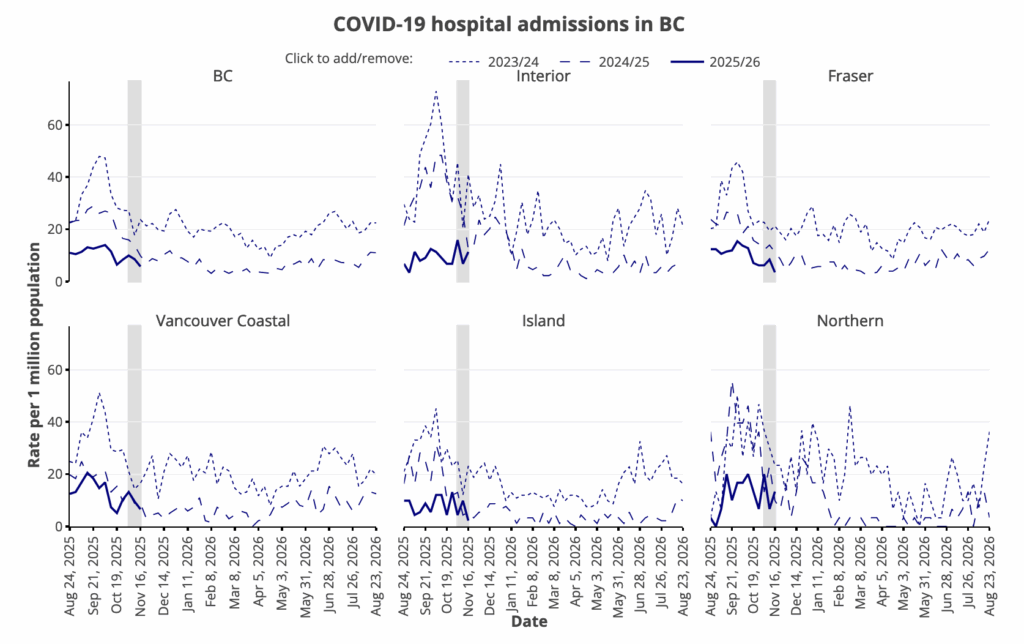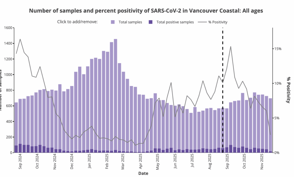 I dug into the by-HA records. Fraser Health Authority might have had slightly higher COVID-19 levels than VCH as seen in the case counts and hospital admissions: