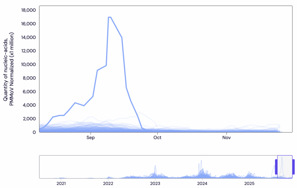 What’s a superpooper? My term for someone who sheds a hugely higher number of viral particles than average amount. This article (2025-06-08), for example, describes a mystery superpooper who pooped “probably a few trillion virus particles a day”. This summer, there was a HUGE spike in Coeure d’Alene, Idaho: