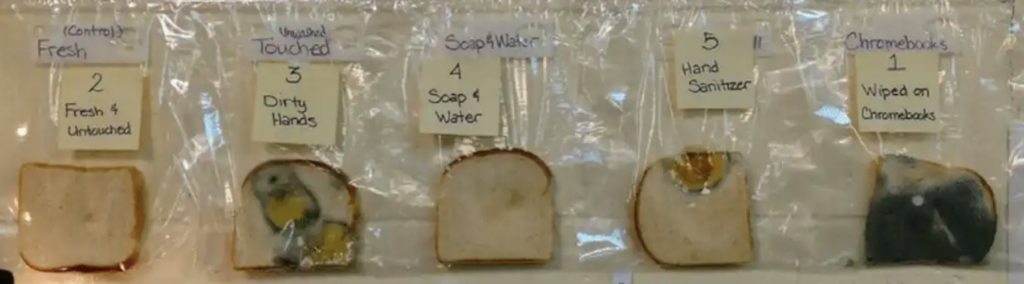 ππ§΄ππ¦ π€’ This older article (2019-12-10) reports on a simple experiment that a schoolteacher did with her class: she took slices of bread and had kids handle them after various hand hygiene techniques. Tongs? The bread was immaculate. No handwashing? Covered with mold. Spoiler: hand sanitizer is not as good as washing with soap and water.
