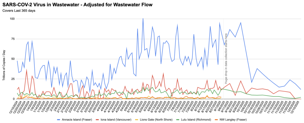 Addendum 2025-12-26 – updated chart based on yesterday’s data. 💩💧 From Jeff’s wastewater spreadsheet: