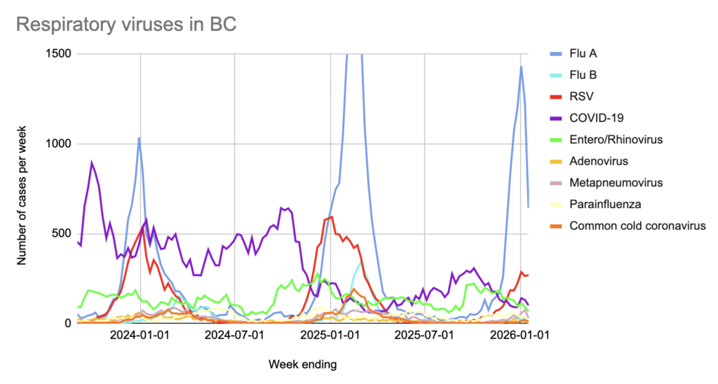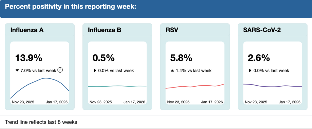 In the most recent data (ending 17 Jan 2026) as reported on 22 Jan 2026, among influenza-like illness (i.e respiratory diseases) cases that the province has test data for: