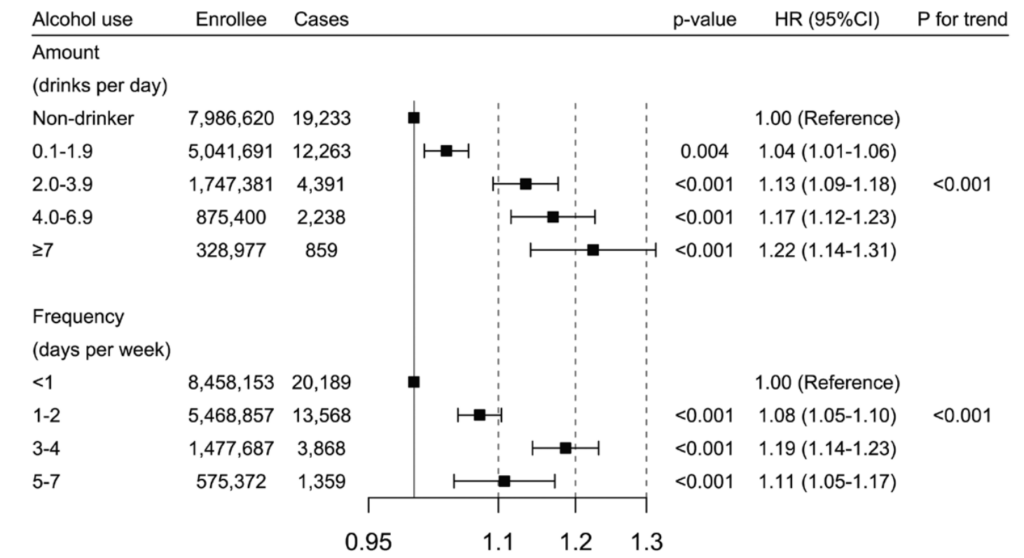 🍻 This paper from South Korea (2026-02-20) reports that the more people drank and the more frequently they drank, the higher their risk of catching COVID-19. The risk of getting a COVID-19 infection increased from a 4% higher (compared to people who didn’t drink) for people who had less than two drinks per day on average up to 22% higher for people who averaged 7 drinks per day.