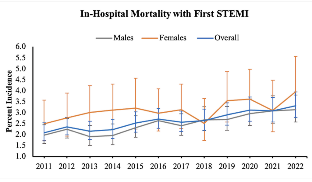 You might have recently seen an article (like this one (2026-02-26)) saying that young people in the US are having more heart attacks and said to yourself (because you read this blog), “AHA! I bet that’s COVID!” No, actually, this time it is not COVID-19. It’s been a trend since well before the pandemic, and there wasn’t a jump when the pandemic started.