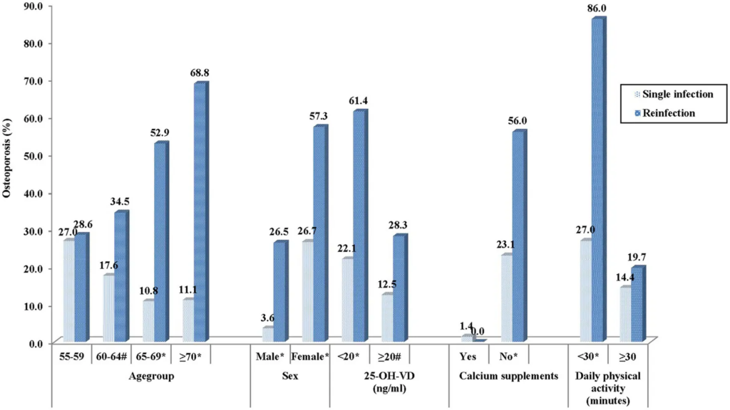 🦴 This paper from China (2026-02-18) reports that among people over 55, those who had a COVID-19 reinfection were three times as likely to get a new diagnosis of osteoporosis as those with one infection after adjusting for cofactors.