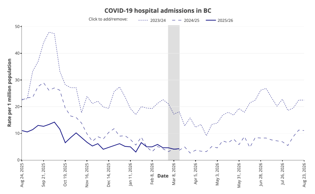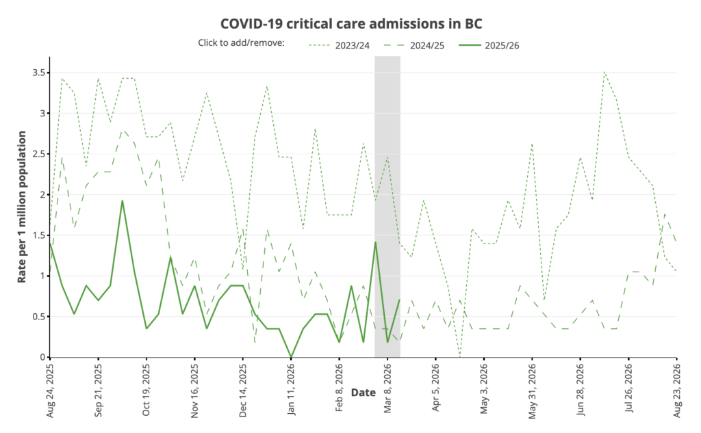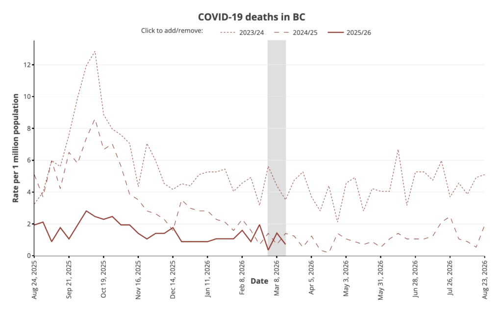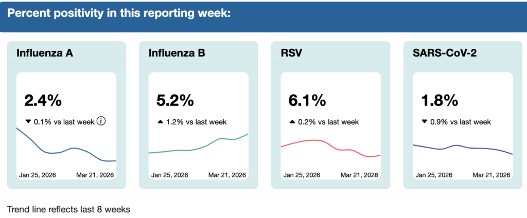From the Viral Respiratory Outcomes page (updated 26 Mar 2026 with data through 21 Feb 2026).